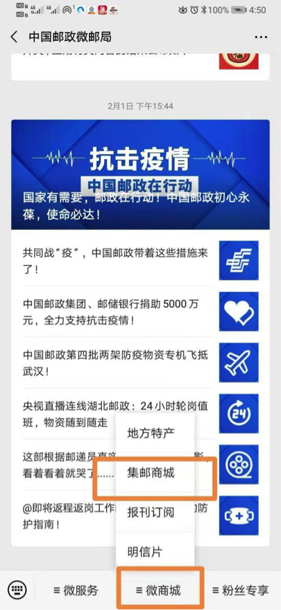 第一步:关注公众号“中国邮政微邮局”