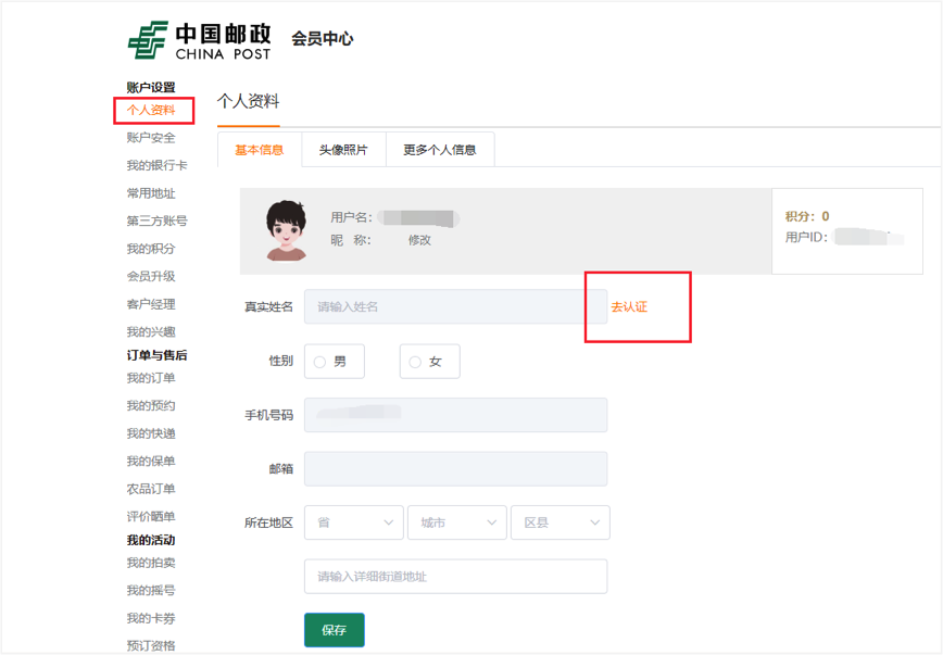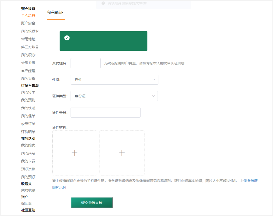 点击头部导航栏的“会员中心”,进入“会员中心”。在“个人资料”页面点击“去认证”。根据提示输入个人信息,完成认证。