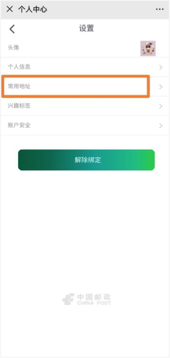 继续在“设置”页面,点击“常用地址”,根据提示输入地址信息。(自提也需要输入地址才可以完成订单)
