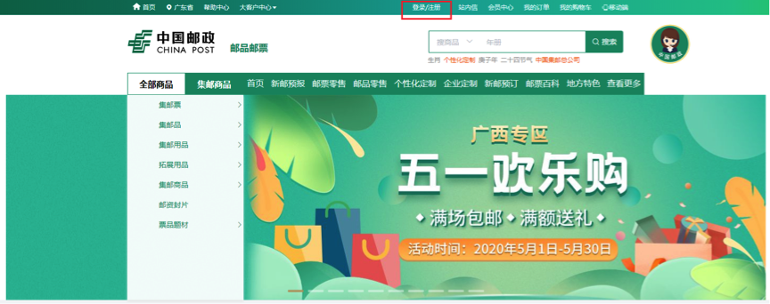 “中国邮政网上营业厅-集邮频道”下单