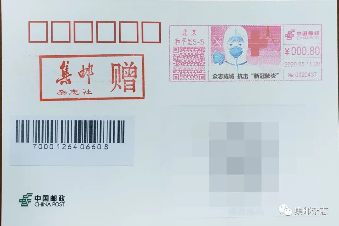 5月11日,北京和平里邮局启用“众志成城 抗击‘新冠肺炎’”邮资机宣传戳。《集邮》杂志社特别使用同题材图案图画明信片加盖“众志成城 抗击‘新冠肺炎’”邮资机宣传戳,制作实寄明信片一枚。今天,我们为第五批《集邮》杂志会员、“大爱无疆 中国加油”义卖活动义卖品提供者以及《集邮》杂志社举办的3次竞买活动中标者实寄了该枚明信片。明信片已于今天全部寄出,请大家注意查收。
