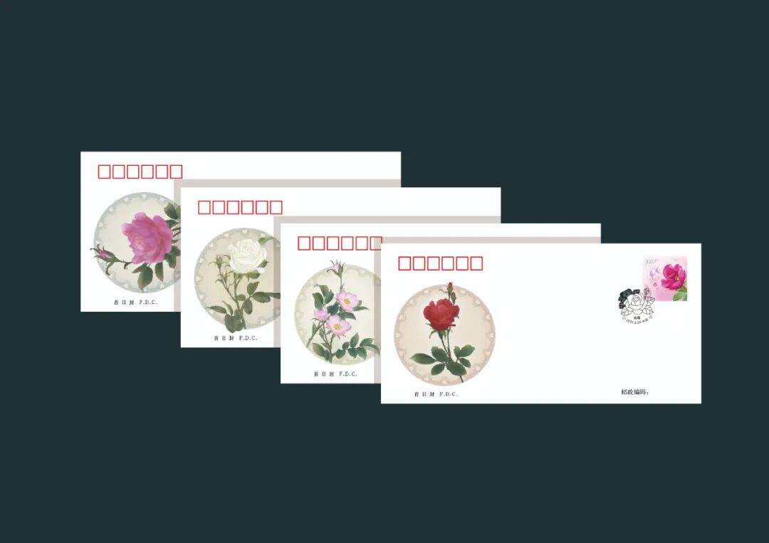 中国邮政定于2020年5月20日发行《玫瑰》特种邮票一套4枚。邮票图案名称分别为:玫瑰、单瓣粉玫瑰、重瓣白玫瑰 、重瓣紫玫瑰,全套邮票面值为5.40元。