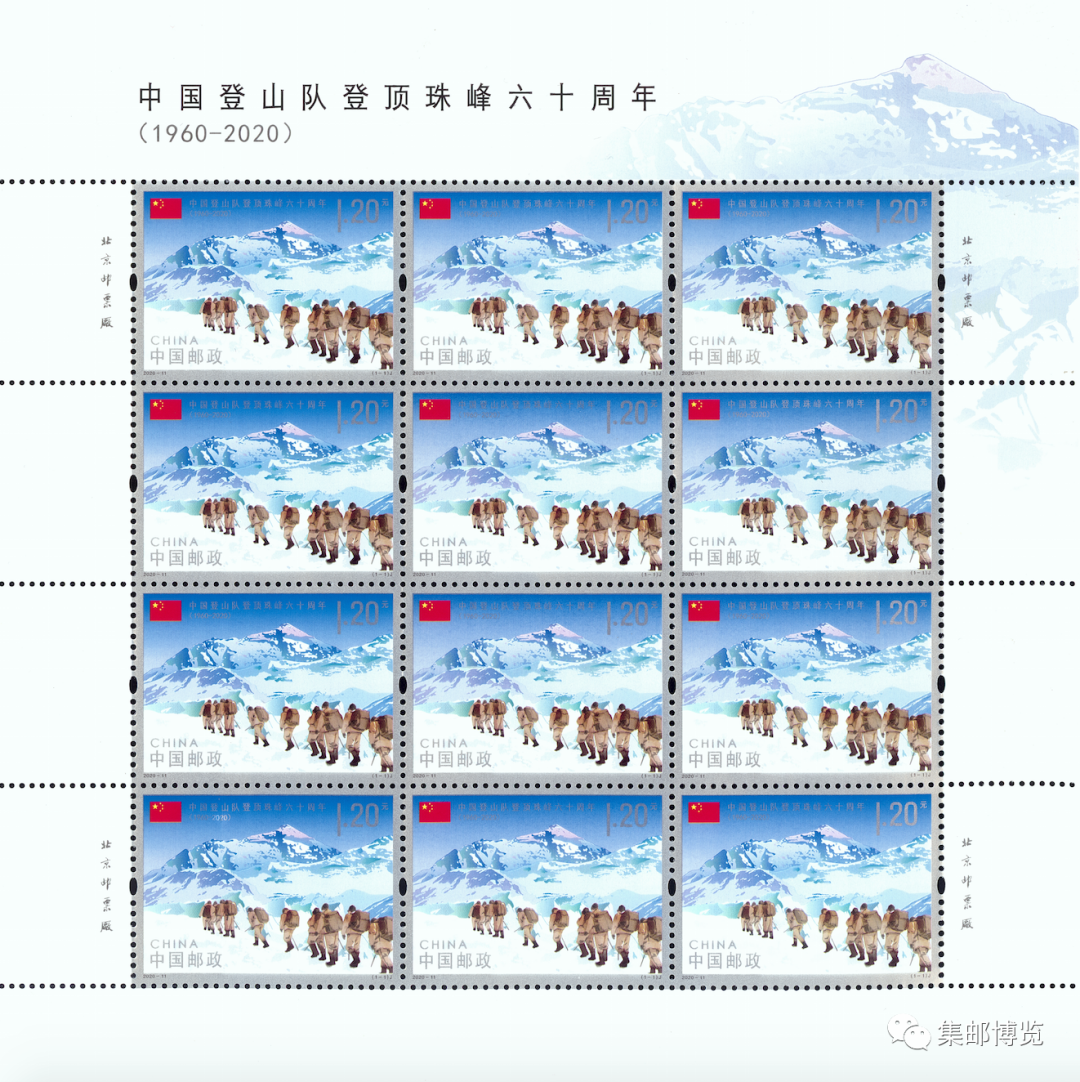 中国邮政定于2020年5月25日发行《中国登山队登顶珠峰六十周年》纪念邮票一套1枚。邮票图案名称为:中国登山队登顶珠峰六十周年,全套面值1.20元。计划发行数量740万套。