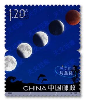 中国邮政定于2020年6月21日发行《天文现象》邮票一套5枚,名称分别为:日环食、月全食、流星雨、大彗星、水星凌日,面值分别为:1.20、1.20、1.20、1.50、1.50元。