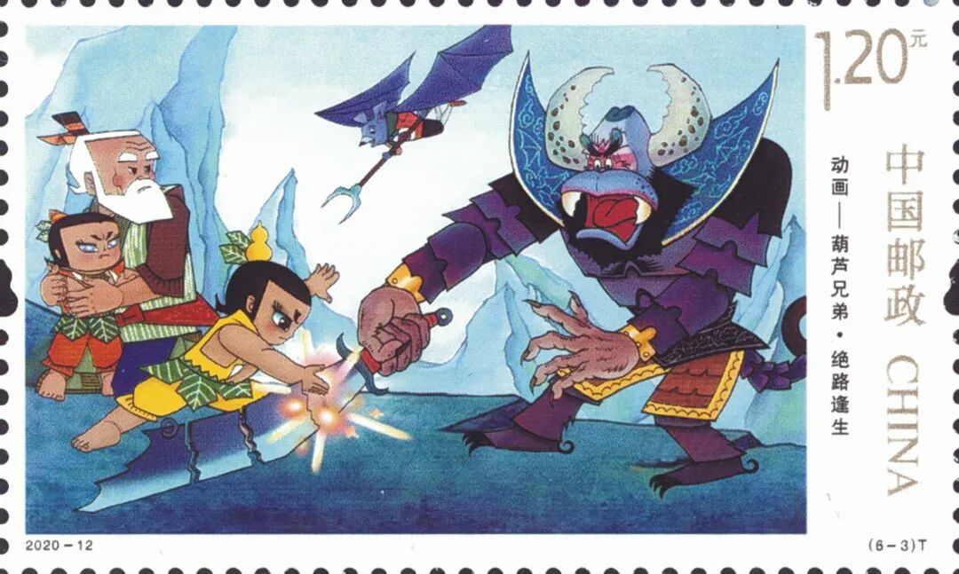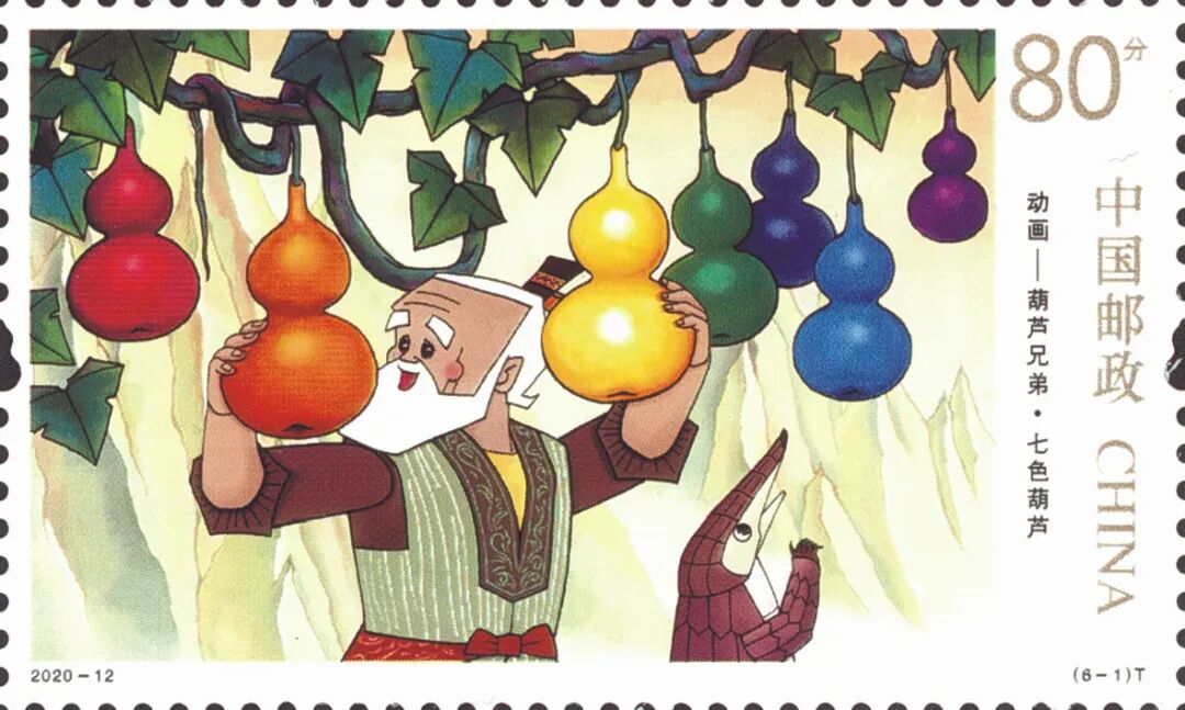 中国邮政定于2020年6月1日发行《动画——葫芦兄弟》特种邮票一套6枚。邮票图案名称分别为:七色葫芦、梦窟迷境、绝路逢生、水火奇功、巧夺如意、七子连心,全套邮票面值为6.40元。计划发行数量750万套。