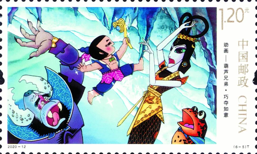中国邮政发行《动画——葫芦兄弟》特种邮票1套6枚。邮票图案名称分别为:七色葫芦、梦窟迷境、绝路逢生、水火奇功、巧夺如意、七子连心,全套邮票面值为6.40元。更多内容点此回顾。