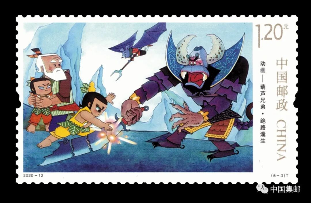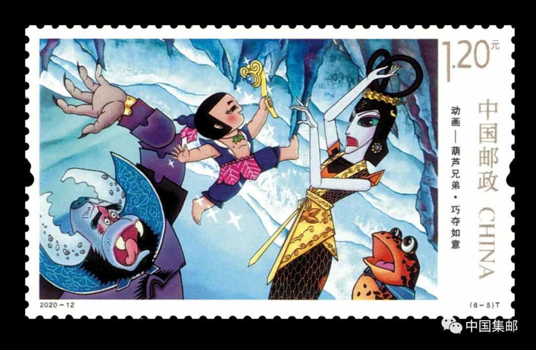 中国邮政于2020年6月1日发行了《动画——葫芦兄弟》特种邮票一套6枚。邮票图案名称分别为:七色葫芦、梦窟迷境、绝路逢生、水火奇功、巧夺如意、七子连心,全套邮票面值为6.40元。计划发行数量750万套。更多内容点此回顾