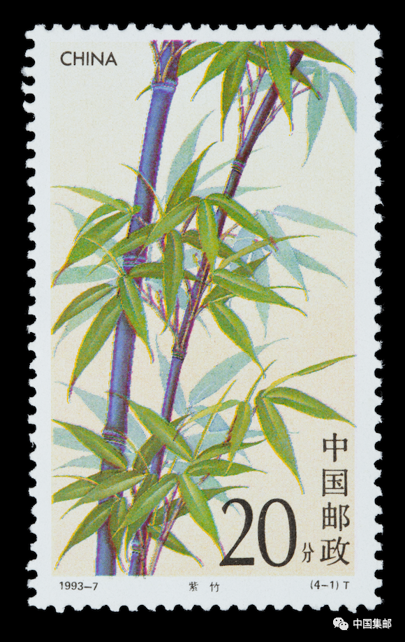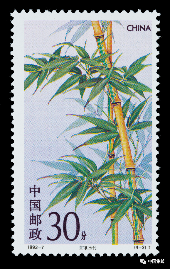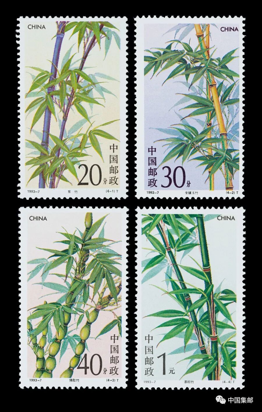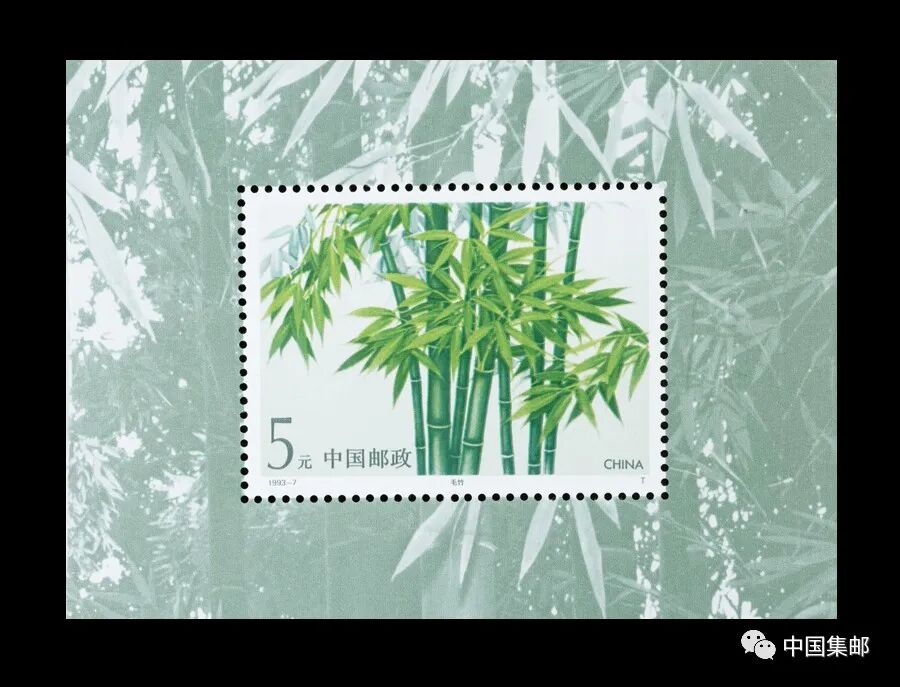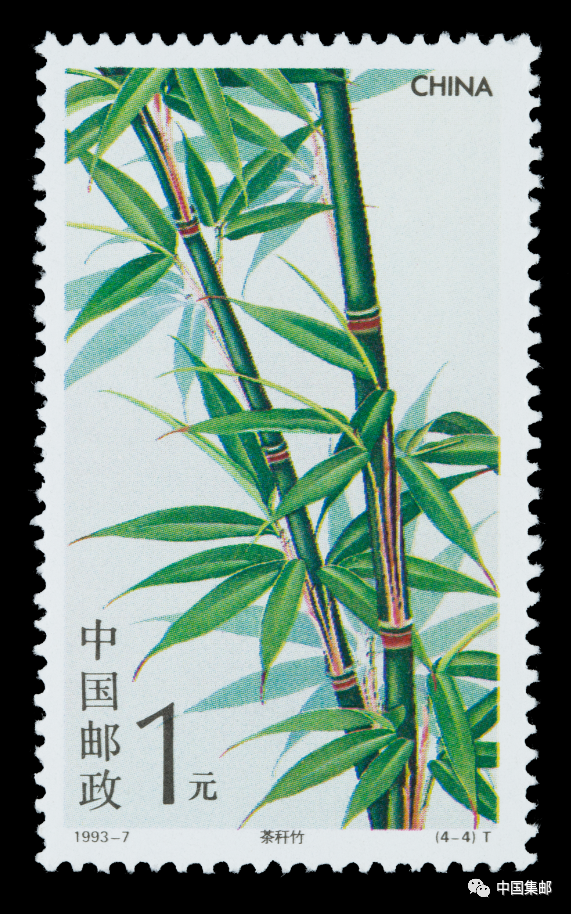 为了展现中华大地珍贵的植物资源,中国邮政发行了1993-7《竹子》特种邮票,全套四枚,小型张一枚。本套邮票选用的五种竹子均为原产于我国的竹科。设计者在水粉画的写实性中恰当融入中国画的帛象性表现手法,把竹子画得潇洒、清秀、挺拔。