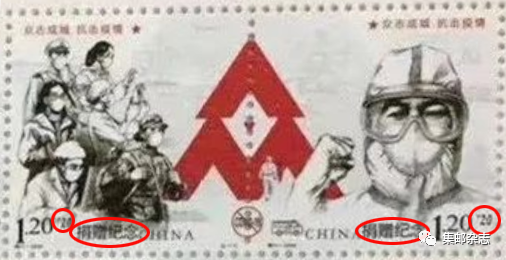 中国邮政发行的《众志成城 抗击疫情》邮票,下方为“中国邮政”铭记,而该臆造品下方的文字变为“捐赠纪念”。面值1.20元变为“1.20*20”。在此,我们也提醒广大消费者,尤其是非专业集邮爱好者,在购买邮票的时候一定多加仔细,看清细节。最好前往正规的网点购买邮票。