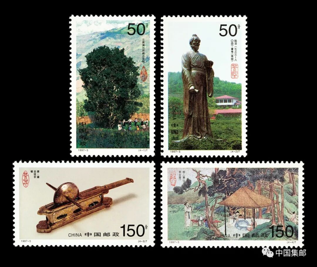 中国邮政为了宣传这一古老文化,发行过1997-5《茶》特种邮票一套四枚,分别为:茶树、茶圣、茶器和茶会。