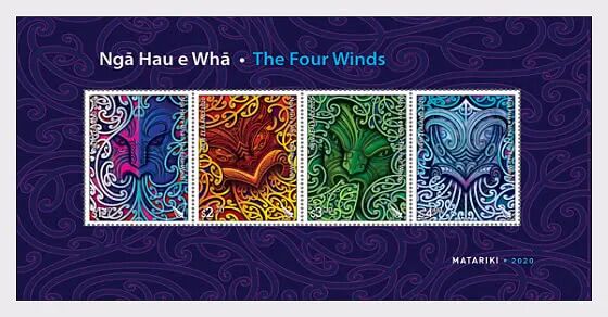 2020年6月3日,新西兰邮政为毛利新年发行一套四枚《四风会堂》邮票和一枚小全张。四风会堂是原住民毛利人的文化设施,毛利人在此举办集会、庆典、葬礼、教导活动和其他重要的部落活动。这栋传统建筑的屋顶及梁柱以雕刻装饰,精致优美。