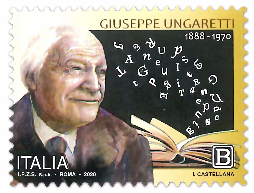 2020年6月1日,意大利邮政发行一枚《意大利艺术和文化传承》系列邮票,主题为纪念诗人朱塞培·翁加雷蒂逝世五十周年。朱塞培·翁加雷蒂(1888—1970)是意大利现代诗人、记者、散文家、评论家,与蒙塔莱、夸西莫多并称“意大利隐逸派诗歌三杰”,其后期作品摒弃了偏爱的短句,回归意大利传统的十一音节诗句,作品随之转向长诗。时代的灾难、文明的崩塌、个人如覆舟般的命运与第二次世界大战给人类造成的悲剧感相互交织,组成了贯穿翁加雷蒂后期诗歌的主题变奏。在诸如《时间的情感》《一个人的生命》《痛苦》《老人笔记》《一声呐喊和风景》等作品中,这些主题得以清晰地辨识。翁加雷蒂也是优秀的翻译家,译有莎士比亚、马拉美等人的作品。