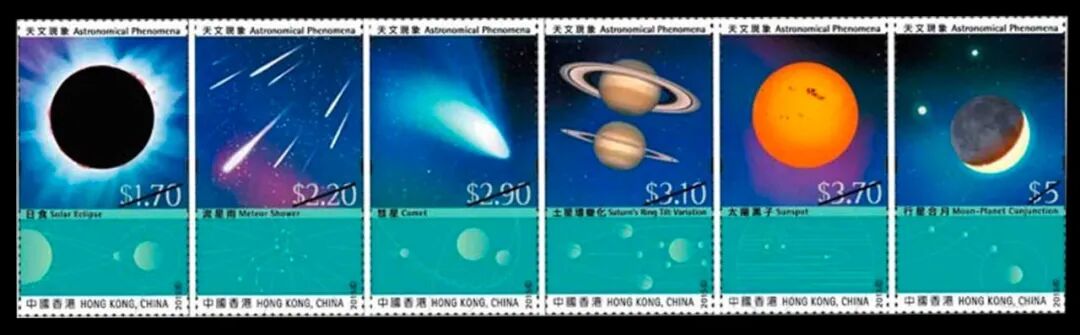 中国邮政计划于2020年6月21日发行《天文现象》特种邮票。在新邮发行之前,我们先来欣赏一下2015年香港邮政发行的《天文现象》特种邮票吧!