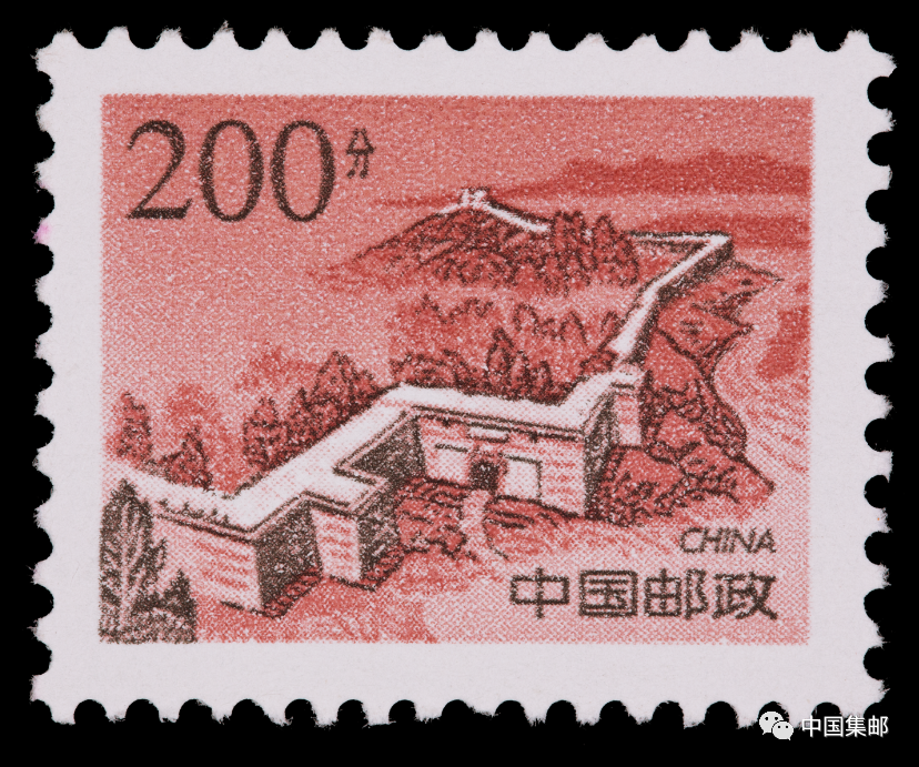 而在民居之后发行的“万里长城(明)”系列普通邮票中,也发现有50分和200分的胶面印变体。
