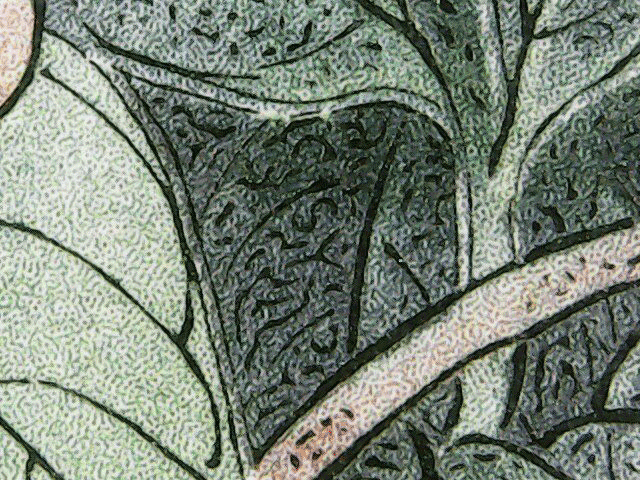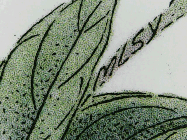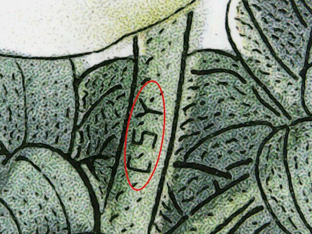 在第一枚邮票已标出的位置,我们可以清楚地看到邮票中的微缩文字暗记为“SY”即邮票名称“芍药”的汉语拼音首字母。