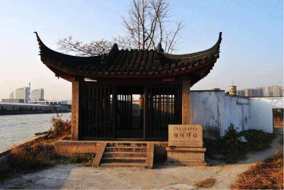 实为横塘驿站门亭(邮票设计时误为姑苏驿),位于江苏省苏州市姑苏区盘门西南十里,大运河与胥江交汇处的河叉三角洲。驿亭南北进深5.5米,东西开间4.2米,六架梁,歇山卷棚式瓦顶,四角有4根石柱,围筑砖墙,南、北各辟1门,东、西各开1窗,窗下各有长条石凳。据史料,驿亭初建于明代,确切年代不详。清同治十三年(1874年)修葺。1961年全面整修,1963年列为苏州市文物保护单位,1980年再修,1982年公布为江苏省文物保护单位。横塘驿地处南北要冲,是水陆两用驿站,明代时规模可观,现仅存亭子,其他馆、楼、庙、台均已不存。驿亭石柱上刻有“客到烹茶旅舍权当东道,灯悬待月邮亭远映胥江”楹联,描绘了当年横塘驿迎来送往的景象。