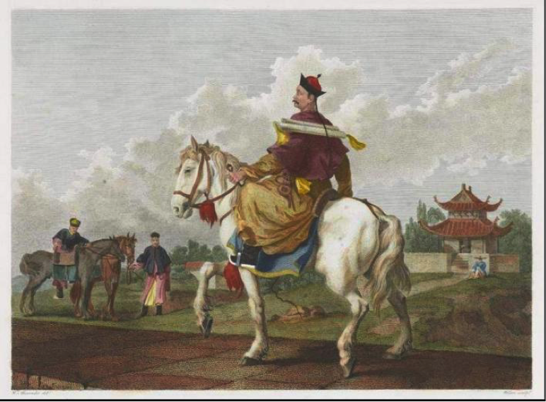 二百多年前,英国马嘎尔尼使团随团画家描绘的乾隆皇朝宣旨驿使