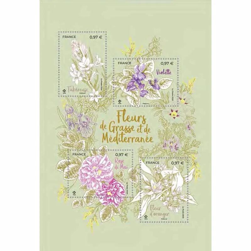 2020年6月15日,法国邮政发行一套四枚《格拉斯玫瑰》邮票和一枚小全张。位于法国南部地中海沿岸的格拉斯被称为全世界的香水之都,拥有众多的香水博物馆、实验室和生产工厂。这里每年5月份都要举办玫瑰花节,每年5月到6月初是玫瑰的采摘季节。格拉斯玫瑰,又称法国千叶、千叶玫瑰、法国玫瑰,对生长地域、气温、水土要求很高,开花枝条,只开花一次,来年老枝不再开花。每年必须繁育新枝,因此产量极低。