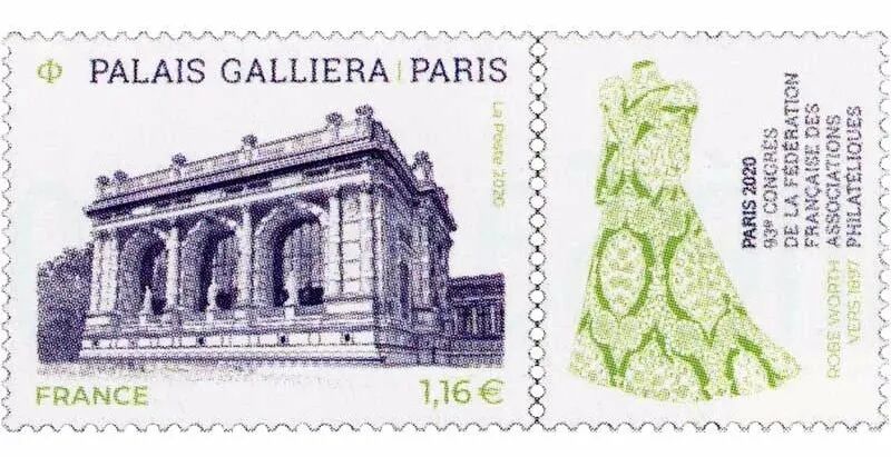 2020年6月12日,法国邮政为法国集邮联合会2020年巴黎大会发行一枚纪念邮票。法国集邮联合会每年召开一次,这种邮票现在已经自成系列。2020年大会在巴黎的加列拉宫,这里是巴黎的时尚主题博物馆,于19世纪末由加列拉公爵夫人所建,是全世界服装、饰品馆藏最丰富的博物馆之一。