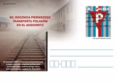 2020年6月14日,波兰邮政发行一枚《奥斯维辛集中营八十周年》邮资纪念片,今年奥斯维辛集中营建立八十周年。1940年4月27日,纳粹德国党卫军首领希姆莱正式批准修建奥斯维辛集中营,集中营的长官为臭名昭著的鲁道夫·胡斯。最初的奥斯维辛一号占地不足6公顷。1940年6月14日,奥斯维辛收容了首批728名波兰和德国政治犯。