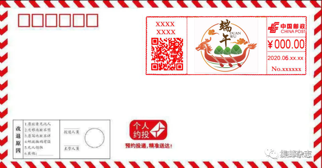 为方便大家的收藏,《集邮》杂志微店特上架了“端午节”国版新式邮资机宣传戳约投挂号实寄封。识别上方二维码即可跳转购买。