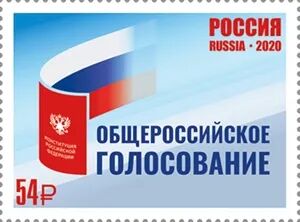 2020年6月11日,俄罗斯邮政为修宪公投发行一枚纪念邮票。俄罗斯原定于4月22日就宪法修正案举行全民公投。但鉴于疫情影响,普京3月底签署总统令,决定推迟举行修宪全民公投。3月早些时候,俄国家杜马(议会下院)、俄联邦委员会(议会上院)以及俄所有85个联邦主体表决通过宪法修正案草案,俄罗斯总统普京6月1日批准7月1日为俄宪法修正案的投票日期。