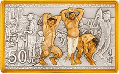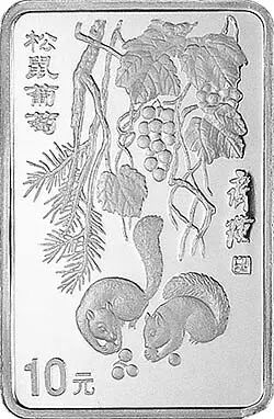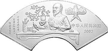 中国近代国画大师齐白石金银纪念币1盎司长方形银质纪念币