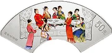 中国古典文学名著——《红楼梦》彩色金银纪念币(第3组)5盎司扇形银质纪念币