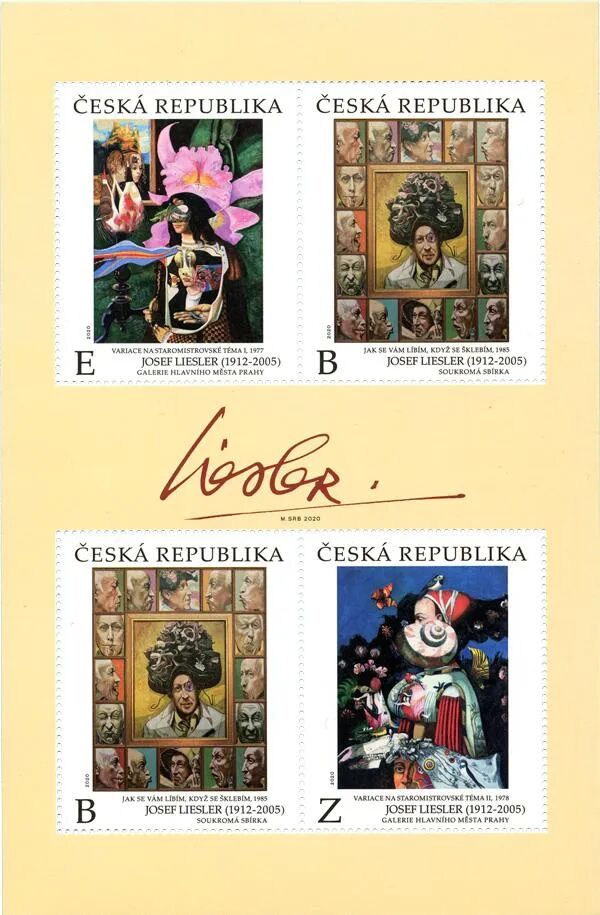 2020年6月17日,捷克邮政发行一套四枚邮票,介绍捷克画家Josef Liesler的作品。捷克版画家和插画家Josef Liesler (1912—2005) 从 1938 年到 1945 年先后加入 “十月七人组”“SVU”“58” 等艺术团体,并成为佛罗伦萨美术学院和比利时皇家美术学院的成员。2003 年被捷克总统授予优秀勋章。这位画家也是捷克邮政的邮票设计师,为捷克邮政设计的邮票已经超过100枚。