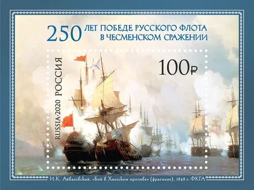 2020年6月17日,俄罗斯邮政发行一枚小型张,纪念切什梅海战250周年。在俄土战争期间,俄国女沙皇叶卡捷琳娜二世为了扩张俄国在黑海的势力范围,决定俄国波罗的海舰队从海上远征土耳其。1770年7月7日,俄土舰队在希俄斯海峡(爱琴海)的切什梅湾进行战斗。此战结局是俄军以极少的代价歼灭了土耳其海军,并在黑海稳了脚跟。