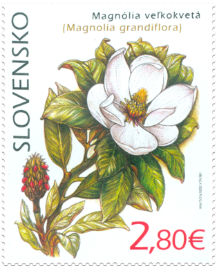 2020年6月17日,斯洛伐克邮政发行一枚邮票,纪念科希策植物园建立七十周年。“二战”之后成立科希策农业和林业工程大学,1950年建立其下属的植物园,也是斯洛伐克规模最大的植物园,占地30公顷。邮票上的花卉是广玉兰(Magnolia grandiflora),属于濒危植物。