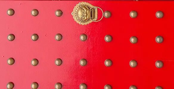 在邮册设计上更凸显了故宫建筑的哲学之美:故宫朱漆大门上镶嵌金钉,九路门钉体现最高等级的门钉排列,象征帝王最高的地位。挂门神是故宫的重要年庆习俗,体现了皇家驱邪避凶、纳福迎祥的观念。设计选取故宫宫门与将军门神元素为灵感来源,邮册外插套采用宫门开合式设计,烫金工艺的将军门神散发祥瑞之气。