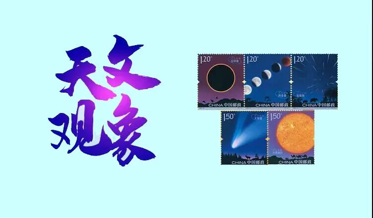 中国邮政于2020年6月21日发行了《天文现象》特种邮票一套5枚。邮票图案名称为:日环食、月全食、流星雨、大彗星、水星凌日,全套面值6.60元。计划发行量为830万套。