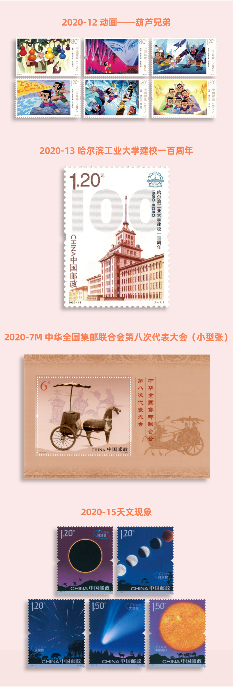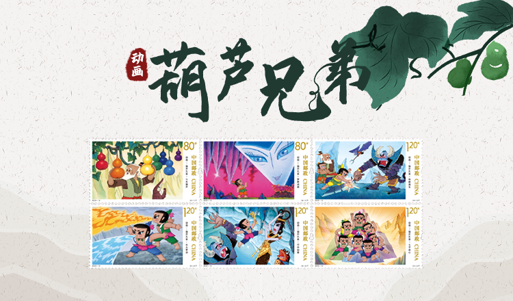 中国邮政于2020年6月1日发行了《动画——葫芦兄弟》特种邮票一套6枚。邮票图案名称分别为:七色葫芦、梦窟迷境、绝路逢生、水火奇功、巧夺如意、七子连心,全套邮票面值为6.40元。计划发行数量750万套。
