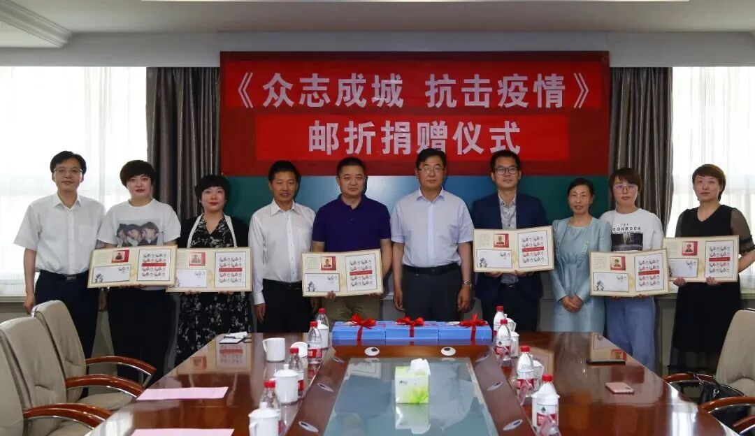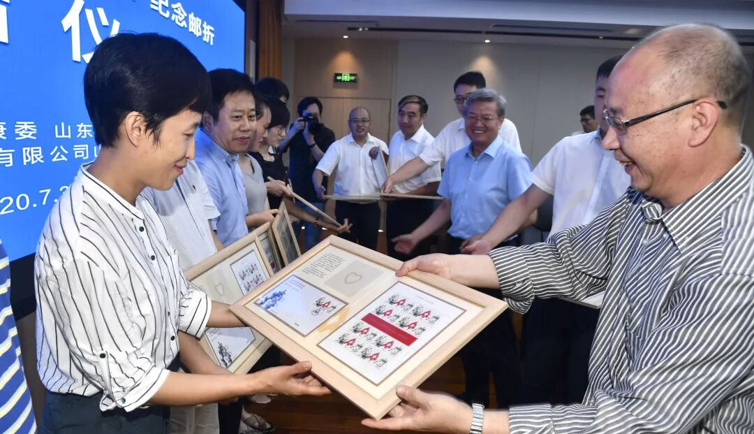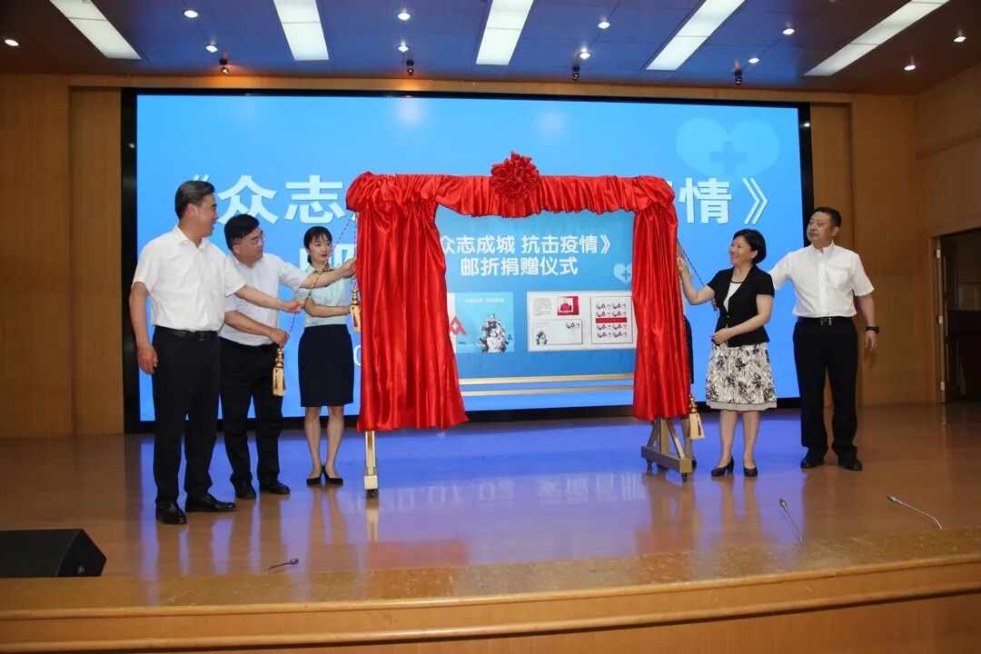 ▲7月3日,由山东省卫生健康委员会、山东省邮政管理局、中国邮政集团有限公司山东省分公司共同举办的《众志成城 抗击疫情》纪念邮折捐赠仪式在济南举行。
