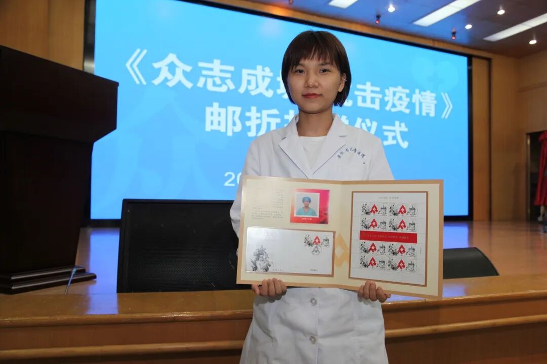 以邮票为载体,把我们的形象和全国各界抗疫战士的形象连接在一起,来纪念我们中国人民的抗疫故事,非常具有收藏意义。同时,邮政也为抗疫做了大量的工作,包括抗疫物资的免费寄递,以及我们医务人员离鄂行李的免费寄递等,在此,我也想对邮政表示感谢!