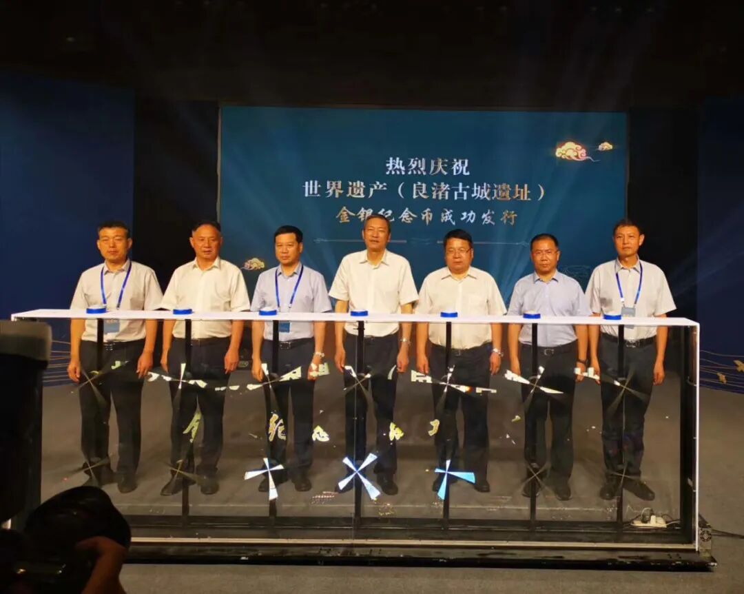 7月6日,世界遗产(良渚古城遗址)金银纪念币发行仪式在杭州良渚正式举行。本次首发仪式由中共杭州市委、杭州市人民政府、中国金币总公司主办,中共杭州市余杭区委、杭州市余杭区人民政府、杭州良渚遗址管理区管理委员会承办,杭州美丽洲实业有限公司协办。