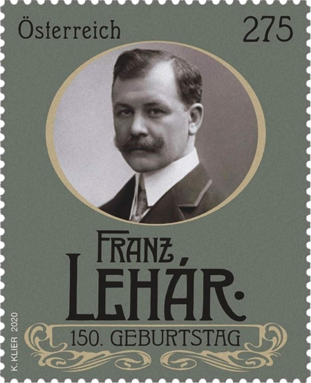 2020年7月11日,奥地利邮政发行一枚邮票,纪念奥地利轻歌剧作曲家弗朗兹·莱哈尔(Franz Lehar,1870-1948)诞辰150周年。1905年他的轻歌剧《风流寡妇》在维也纳连续上演500场,使莱哈尔一举成名,成为继约翰·施特劳斯之后最受欢迎的轻歌剧作曲家。