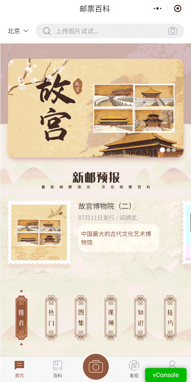 《故宫博物院(二)》数字化内容通过“中国集邮邮票百科”微信小程序拍照扫一扫发布。扫描邮票,观看精彩内容。