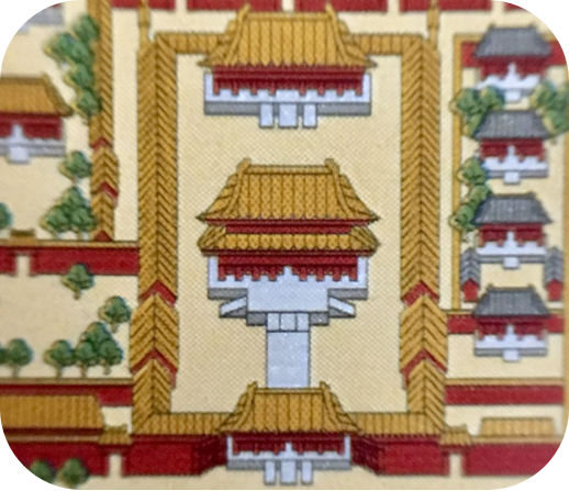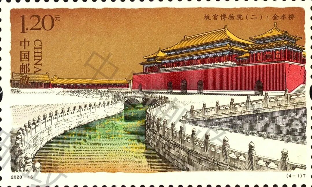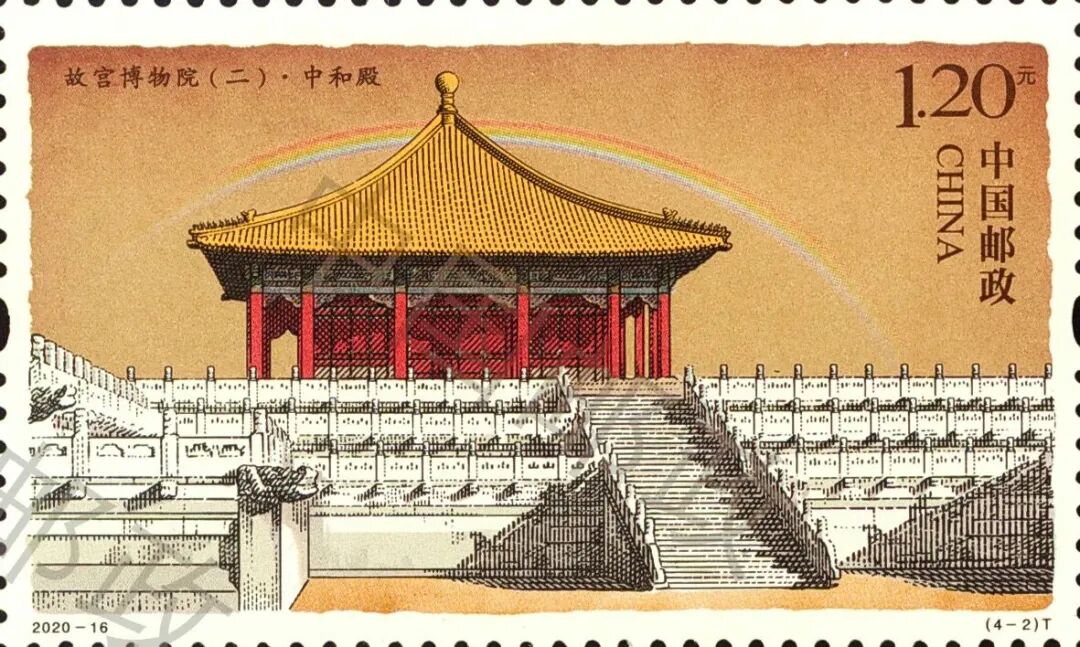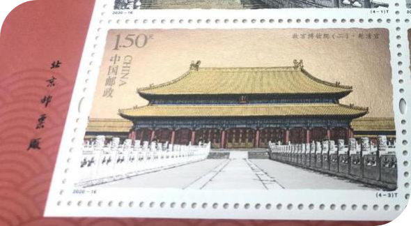紫禁城建造技艺高超,内在考究精妙,外在磅礴大气,代表着当时最高的建造水平。中央轴线上分布着三大殿(太和殿、中和殿以及保和殿)和后三宫(乾清宫、交泰殿以及坤宁宫),左右两条次轴线上分别分布着慈寿宫、宁寿宫等宫殿。出于防御需要,宫殿建筑外围筑有宫墙,四周分布有角楼,外有护城河环绕。故宫平面示意图首次登上邮票,细腻、完整地呈现了故宫恢弘的建筑布局。
