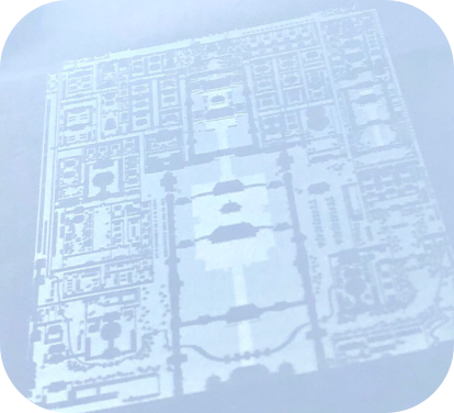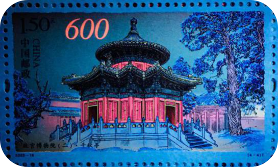 《故宫博物院(二)》特种邮票采用胶雕套印工艺,彩色图案使用细腻的多色胶版印刷,雕刻线条采用黑色雕刻版印刷。雕刻邮票向来以其精湛的雕刻线条、点线的巧妙结合、凹凸的表面质感等特点而独具魅力。邮票雕刻师按照邮票图稿,反复琢磨,一点一线地完成雕刻线稿创作,精益求精。