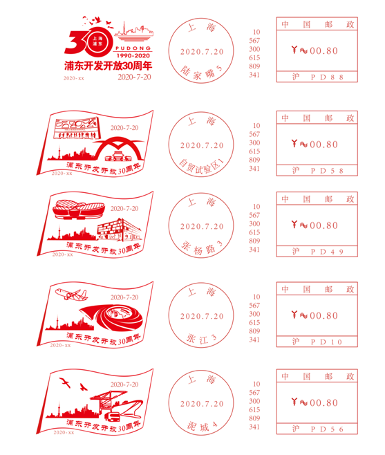 经中国邮政集团有限公司批准,上海市邮政部分营业网点将于2020年7月20日至8月3日启用“浦东开发开放30周年”邮资机宣传戳。