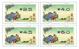 据澳门邮政官网消息,2013年至2019年分别以蛇、马、羊、猴、鸡、狗、猪为题发行生肖系列邮资标签。2020年,因新型冠状病毒肺炎疫情影响而作出延期发行之鼠年邮资标签,将于本年8月4日发行。