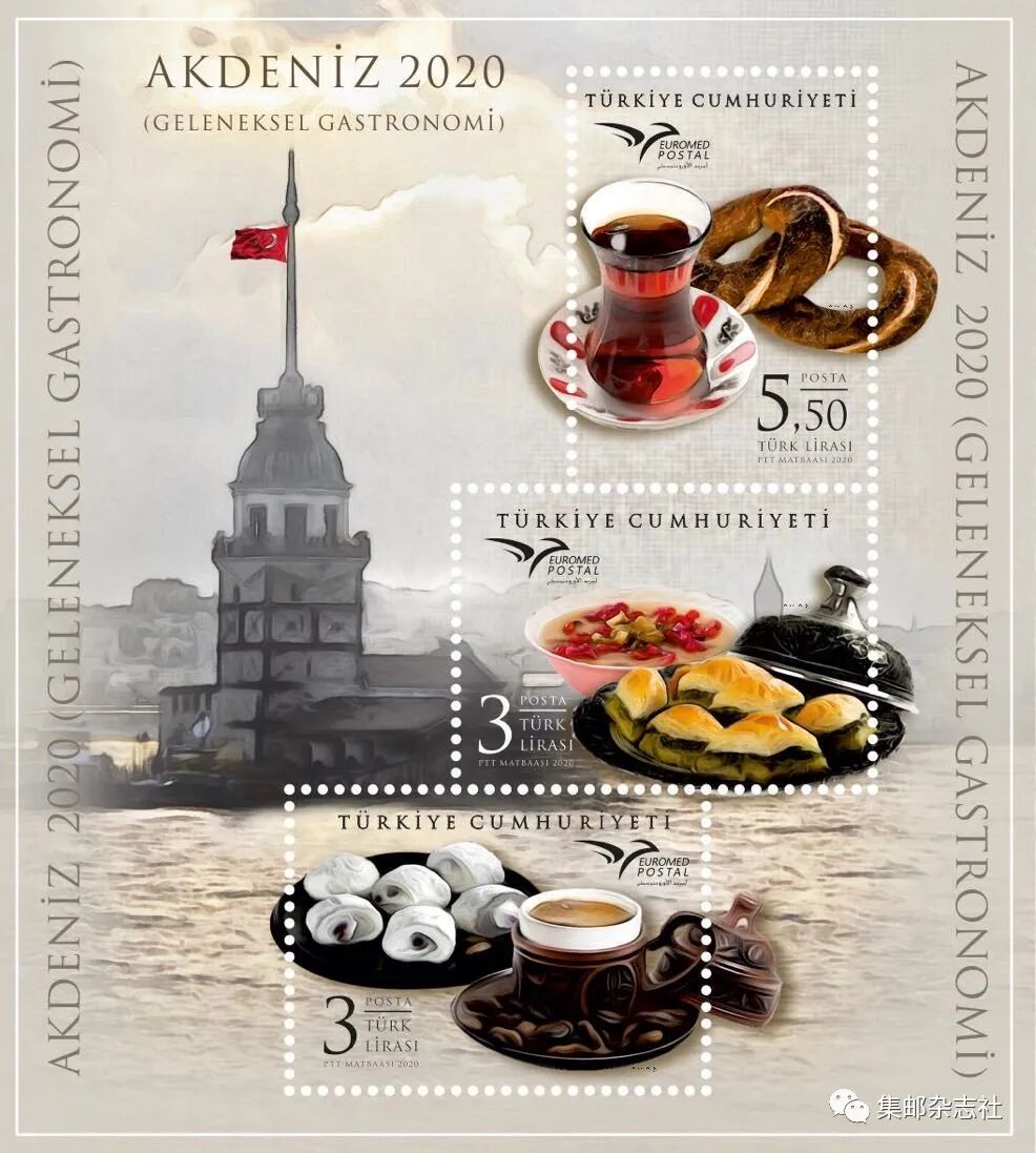 土耳其 7月13日发行 图案为“土耳其红茶”“果仁酥饼”“土耳其咖啡”