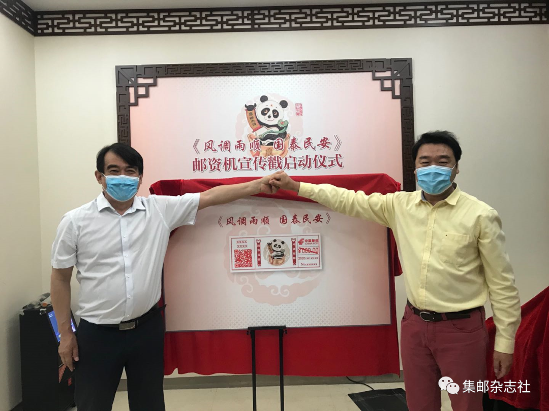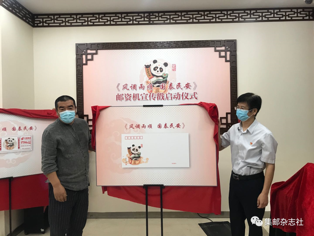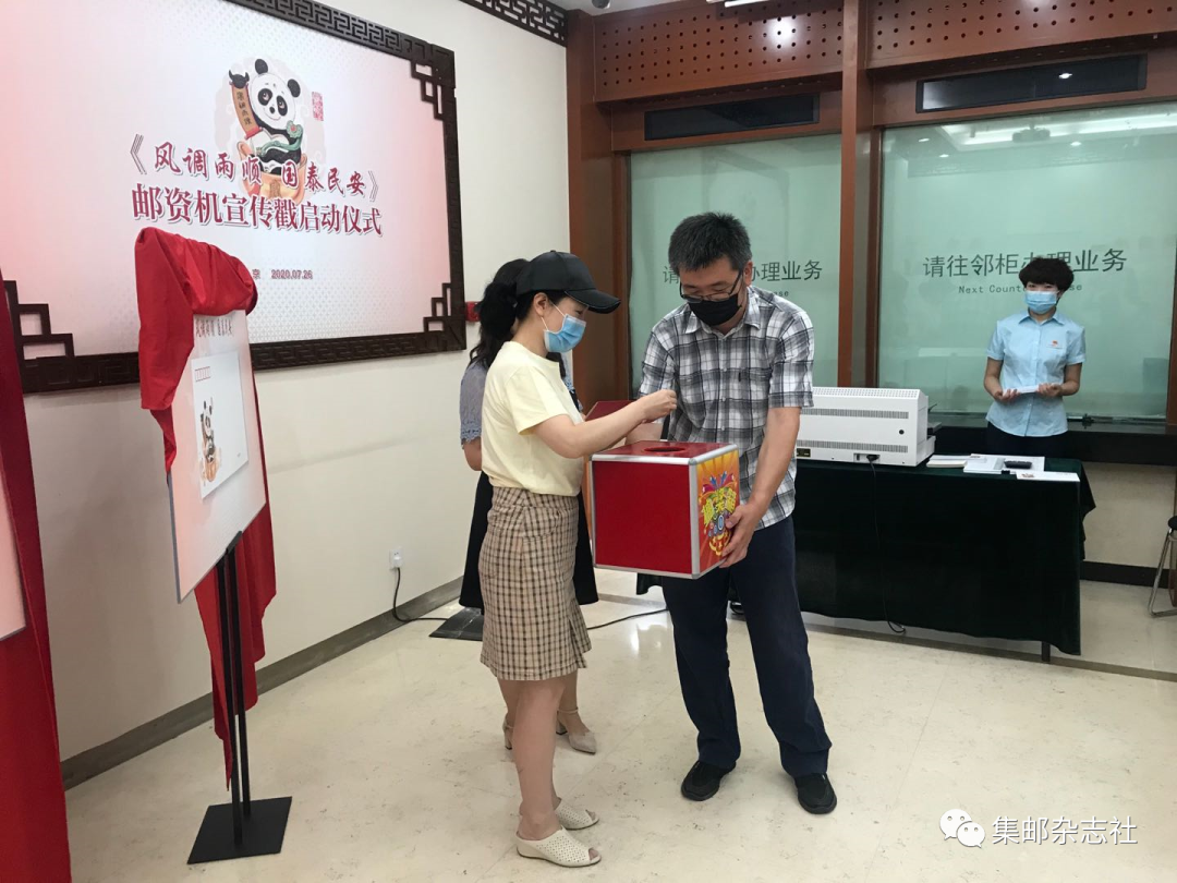 7月26日上午,《集邮》杂志社与中国邮政集团有限公司北京市东城区分公司共同在北京市和平里邮局举行“风调雨顺 国泰民安”邮资机宣传戳启用活动。中国邮政集团有限公司邮政业务部副总经理李陕川,著名画家、“风调雨顺 国泰民安”邮资机宣传戳戳图原作者刘中,中国邮政集团有限公司邮政业务部函包处经理张贞,中国邮政集团有限公司北京市分公司商函中心副主任张文东,《集邮》杂志社社长、主编丛志军,中国邮政集团有限公司北京市东城区分公司副经理韦学宁等出席了今天的活动。李陕川、刘中共同为邮资机宣传戳揭幕,丛志军、韦学宁共同为邮资机宣传戳国版纪念封揭幕。揭幕嘉宾共同启用邮资机。并在加盖邮资机宣传戳的纪念封上亲笔签名。
