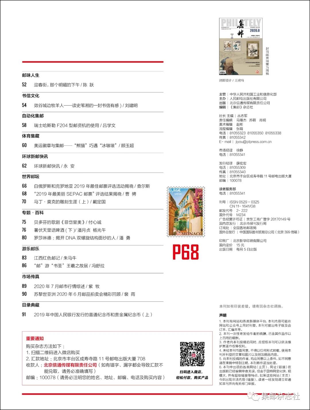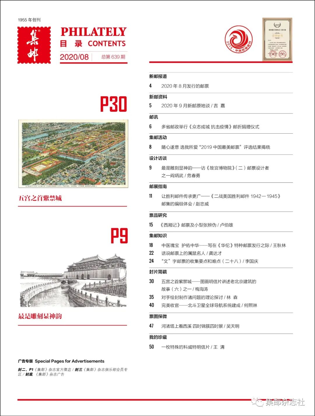 2020年第8期《集邮》杂志已经下厂印制,今天先为大家介绍一下这期杂志的精彩内容。