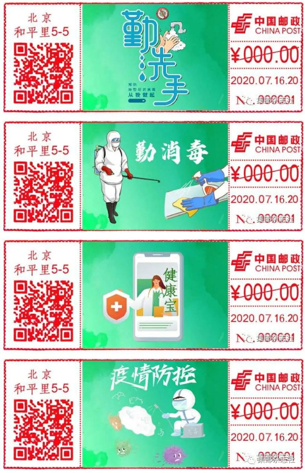 经中国邮政集团有限公司批准,北京和平里邮局将于8月10日启用“疫情防控”系列邮资机宣传戳的第二组。该组共有4枚机戳,图案分别为“勤洗手”“勤消毒”“健康宝”“疫情防控”。为了方便大家的收藏,《集邮》杂志微店今天同样为大家上架了该系列邮资机宣传戳的实寄封。识别上方二维码即可预订“疫情防控”邮资机宣传戳挂号实寄产品。
