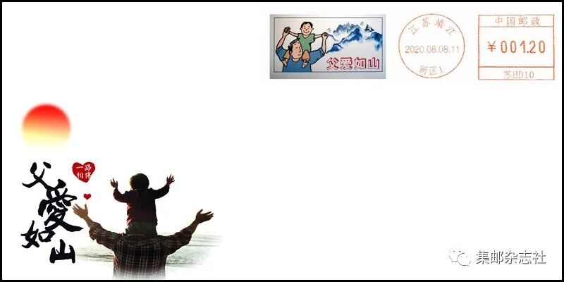 8月1日,《集邮》杂志微信公众号为大家报道了中国邮政江苏靖江分公司将于8月8日在靖江新区邮政支局启用“父爱如山”彩色邮资机宣传戳一枚的消息。