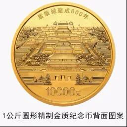 其中,1 公斤圆形金质纪念币,面额 10000元,直径90毫米,最大发行量100枚,背面图案采用紫禁城由北向南的俯瞰景象。作为我国古代宫殿建筑发展的集大成者,紫禁城在建筑技术和建筑艺术上代表了中国古代官式建筑的最高水平,1公斤金币就采用了紫禁城的俯瞰景象。紫禁城集中反映了中国的传统礼制思想与文化,其建筑的布局、形式、装饰等无不体现着中国的传统特色,成为东方建筑史上的典范,同时也是研究中国政治经济、社会历史与哲学思想的文化宝库和世界文化遗产中一座绝无仅有的丰碑。紫禁城的恢弘气势,以及中华优秀传统文化精神内核,在1公斤圆形金质纪念币的图案上一览无遗。