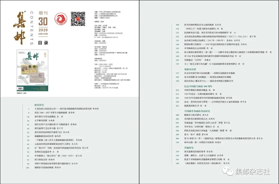 《集邮》增刊第30期已于2020年7月出版,该期增刊是以中国邮政历史为主的集邮学术增刊,集中展示近些年海内外集邮家对我国不同历史时期邮政史研究的最新成果,以及关于邮政史集邮收集与研究的心得,其中不乏精彩的名家新作。